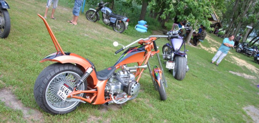 Кастом на базе мотора К-750 был построен нашей мастерской в 2012 году . Харизматичный байк с необычной покраской . Заднее колесо R-18 шириной 240 на 120 спиц. Переднее R-19 на 80 спиц. Дорожный просвет 12 см. Передняя вилка от кроссового мотоцикла ЧЗ-516 удлиненная.